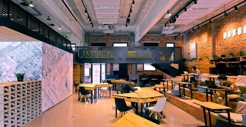 “Yan Jing Lane”, homophonic to “extended quietness” (in Chinese), is at the address of 20 Mid Yanjing Li St., Chaoyang District, Beijing. It is located on the East Fourth Ring Road, very close to several important areas in the centre of the city, convenient for resident of the community to reach these places Up to now, “Yan Jing Lane” includes an apartment (co-living) and an office building (coworking). The coworking space, like “workers of the world united” in political slogans, expresses a vigorous vitality.