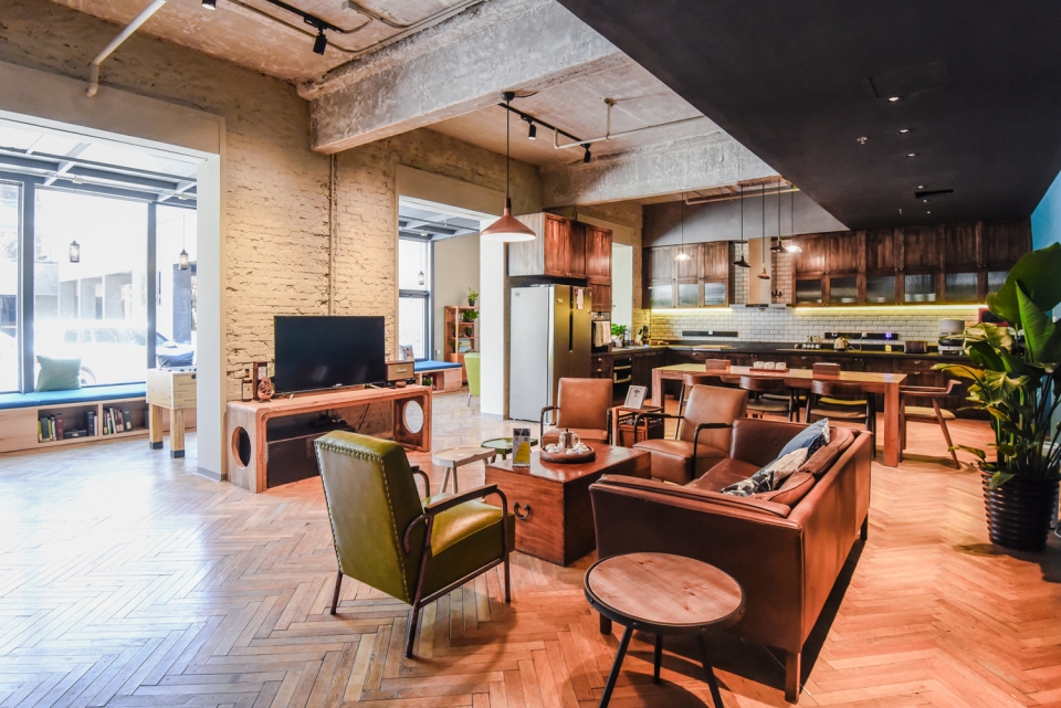 As a community of free creators, we hope to provide all kinds of valuable opportunities and services. Therefore, the loffices on the third floor provide spaces for medium-sized teams. Each of them has a usable area of 60~80m2 and can accommodate 12~18 people to work freely. Another part of the community is apartment space. Rather than classical apartments, it’s probably more proper to use “shared flats” to describe the space. It contains 5 floors and 70 rooms, with a total space of about 2500m2. The architect designed a large living room for it that can accommodate dozens of people, and a large open kitchen that has everything from embedded ovens and disinfection cabinets to cooking robots, hoping that these 70 young people will be like the flat-share youths in Friends or the Big Bang Theory, communicating, exchanging, sharing and understanding in a large living room every day.