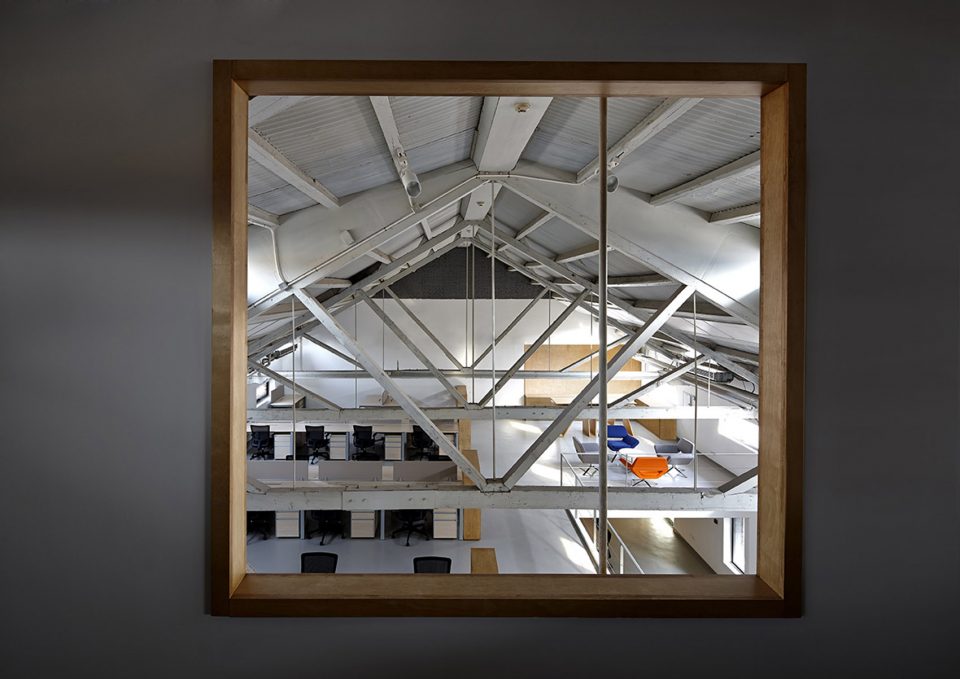 在原本空旷而平淡的空间框架下, 任何“联合创意活动”的开展都会趋于同质化而失去引人关注的情节,所以我们在空间内嵌入多个盒子作为激活性的装置。空间中的事件要通过不同的流线,围绕或进入这些盒子展开,而走到这些盒子里面又会发现很多有趣的取景窗,对着特定的场景,重新串起多条叙事性的线索,它激活人通过自身的体验去感知一些预料之外的东西。
