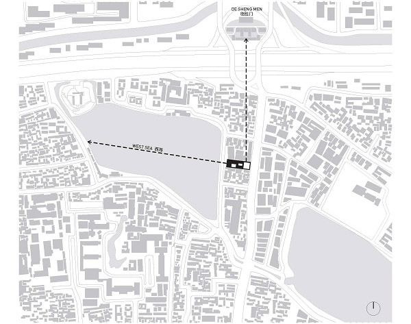 The project is located in a narrow base between Xihai(the West Sea) east bank and Deshengmen Inner Avenue, less than four hundred meters to the south of Deshengmen tower. Facing two rows of brick-hybrid structure plant construction on the side of the west sea, the predecessor of the site was the prestigious Blue Lotus Bar, on the eastern side were a few little shabby temporary housing built in the seventies and eighties, which had no conservation value. The owner hoped to renovate this land which goes through from the West Sea and Deshengmen Inner Avenue into a space with a kind of Beijing Hutong cultural characteristics, while meeting a series of very contemporary mixed-use features – including the tea house, dinner, party, office, conference, as well as living and entertainment.