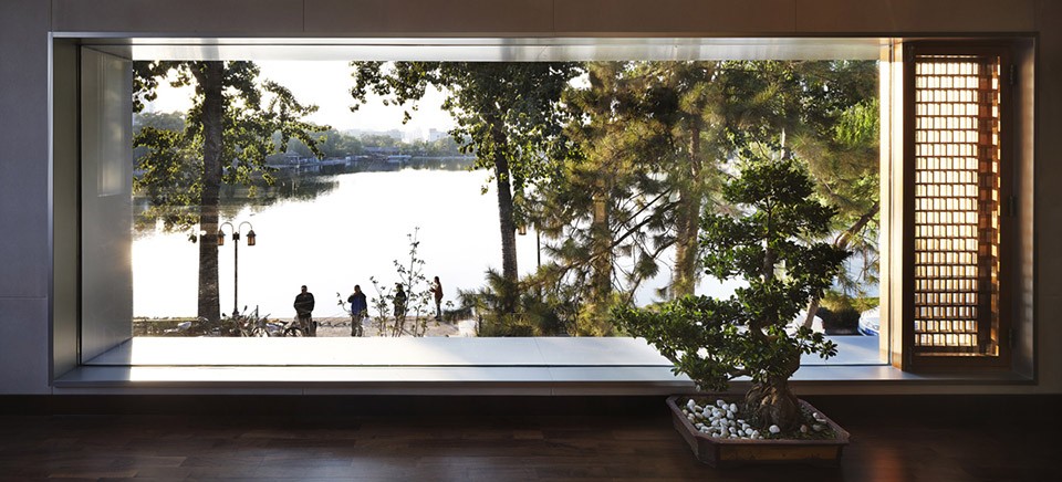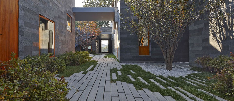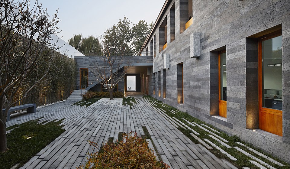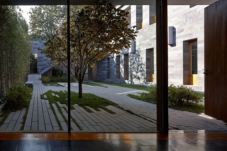 Inner facade and west façade have used polished volcanic rock with five degrees of depth of palette, similar with the periphery walls of the mansions nearby hidden in the hutongs both in scale and in color, while in texture reflecting a more accurate and detailed change. Different-sized and-proportioned catalpa wood outdoor windows created through a complex construction are observed within the various viewpoints bringing changes in the facade expressions, while maximizing the possible viewing from the inside outward.
