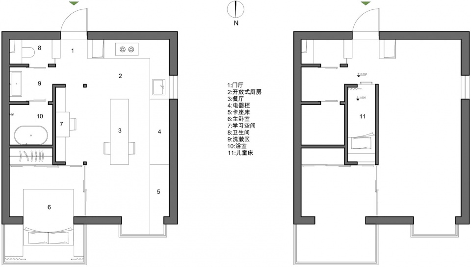 ▼书房,下部为学习空间,上部为儿童房,study room with lower space for study and upper space for sleep