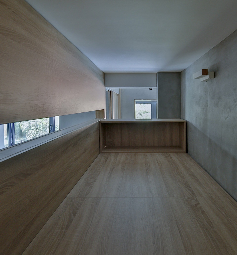 The child’s room is in a space with a height of 1000mm, in which we kept the length of 2700. I opened a day lighting opening on one side of the security damper, and on the upper berth, one can see every open space of the family “except the bathroom part”. Made a little cabinet at the head of the bed and put out little items. Blocked the head, retained the three windows that can see the whole house from the upper berth, divided the two spaces through the bedroom’s sliding door.