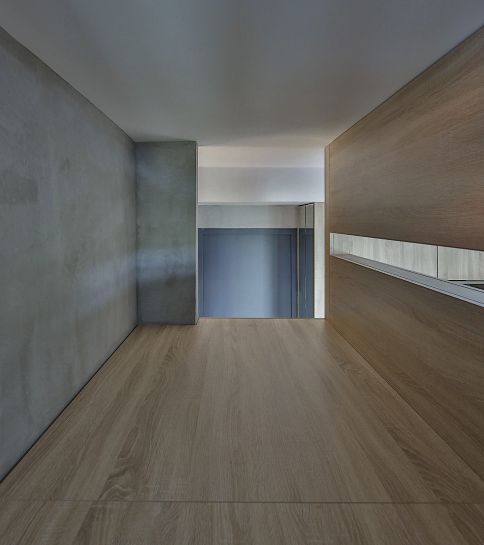 The space is conventional one room, one hall, one kitchen, one bathroom and one balcony, each space is opposite independent while the bathroom area is partial small. There is a small window in the kitchen, which is in the shared patio with the neighbors, with the functions of ventilation and visual extension but weak lighting function. When I re-planned the space and wall, I kept the longest extension of the vision when entering the house. When the person changes shoe in the entryway, he can see the 3 place of outside daylighting windows inside the space. The reason is to magnify the occupant’s experience of the space through visual extension in a small space.