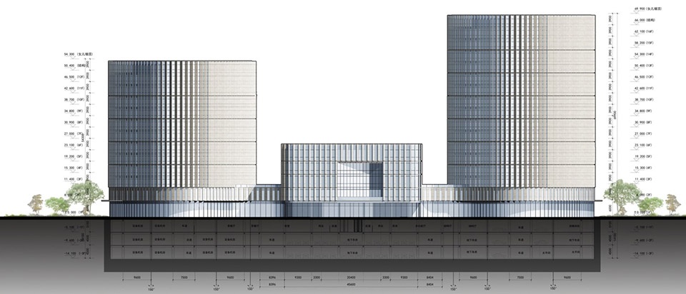 长春中医药大学附属第三临床医院为新建三级甲等中医医院工程,位于吉林省长春市长春中医药大学园区东北角,总建筑面积83561m2,其中地上57966 m2,地下25595m2。平面布局为一字型六层裙房,上部东西设A、B两座塔楼;地上裙房设门诊部、急诊部、疗区住院部、体检中心、检验科等功能用房,本项目总病床数700床。