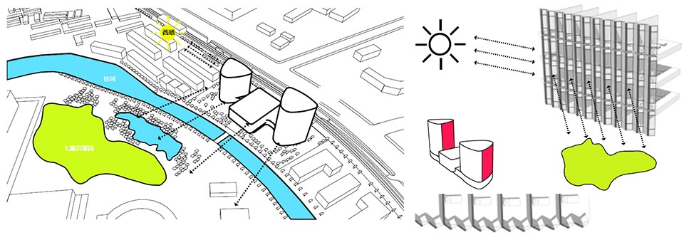 ▼造型现代典雅,虚实、尺度、比例与周边环境的协调