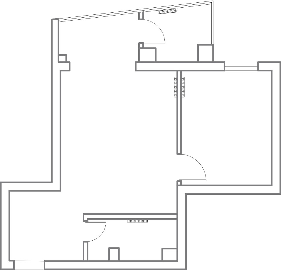 ▼一套常规的一室一厅,3处隔断墙体划分空间