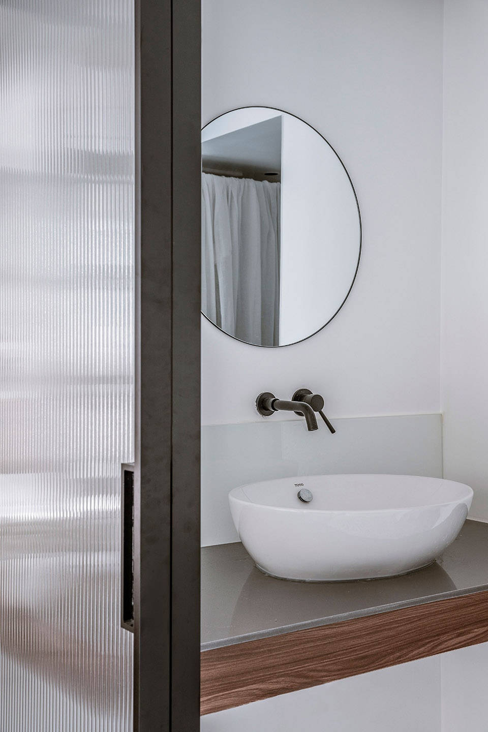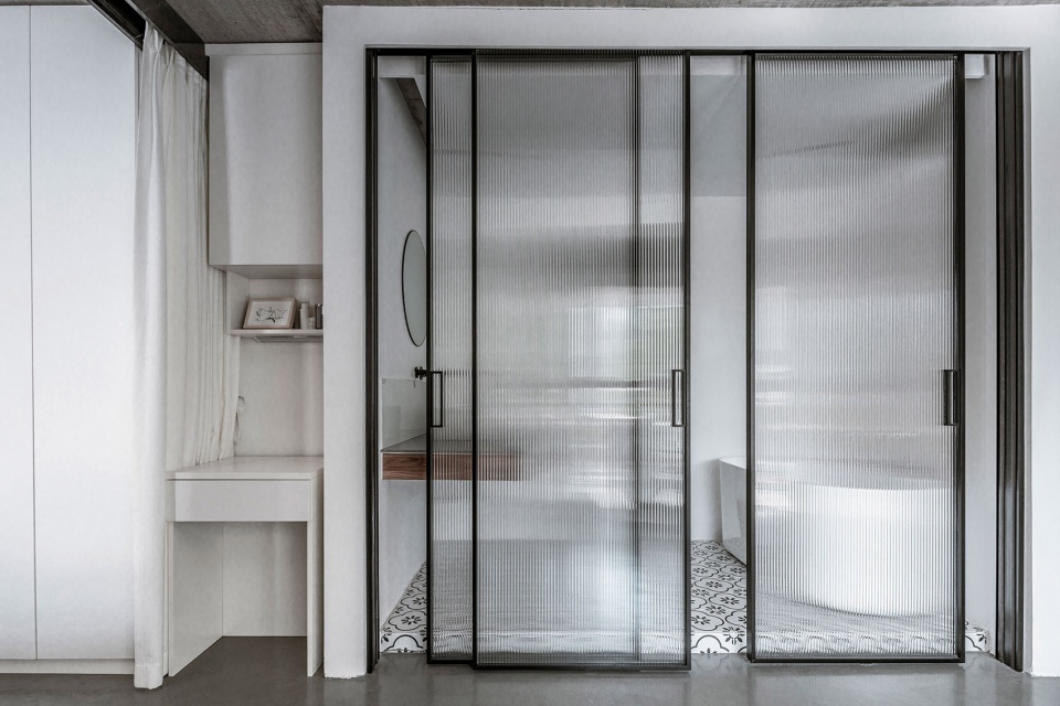 1:三扇玻璃推拉门将光线引入卫生间,解决了原来无自然采光的问题,同时也改善了通风。