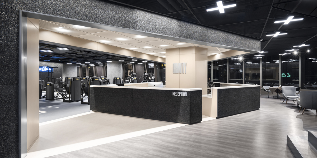 Almost any kind of physical training involves pushing back against gravitational forces. This concept of gravity and how to work against it was the primary focus when designing the Gravity fitness club. The design for this space distinguished between open areas for individual training (i.e. cardio, strength, and flexibility) and areas for group training (yoga, spinning, and Pavigym).