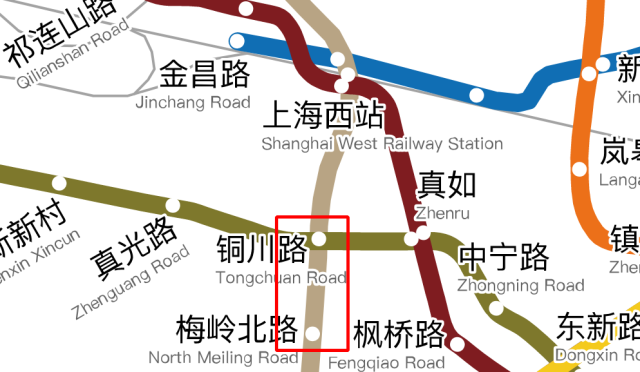 As can be seen from the map, the section from Meiling North Road station to Tongchuan Road station is only 663 meters, which is also a very short two stations in Shanghai subway. This is also a very important transportation node in Putuo District and the place where the three rail transit meet.