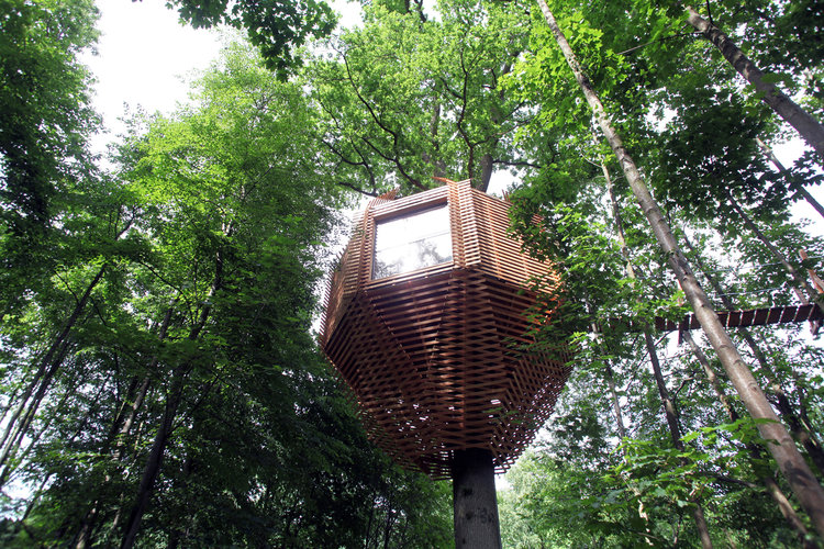 Meeting point between poetry and carpentry mastery, ORIGIN tree house discreetly stands out among the centenarian oaks of the Château de Raray forest, as if it had always been part of the scenery.