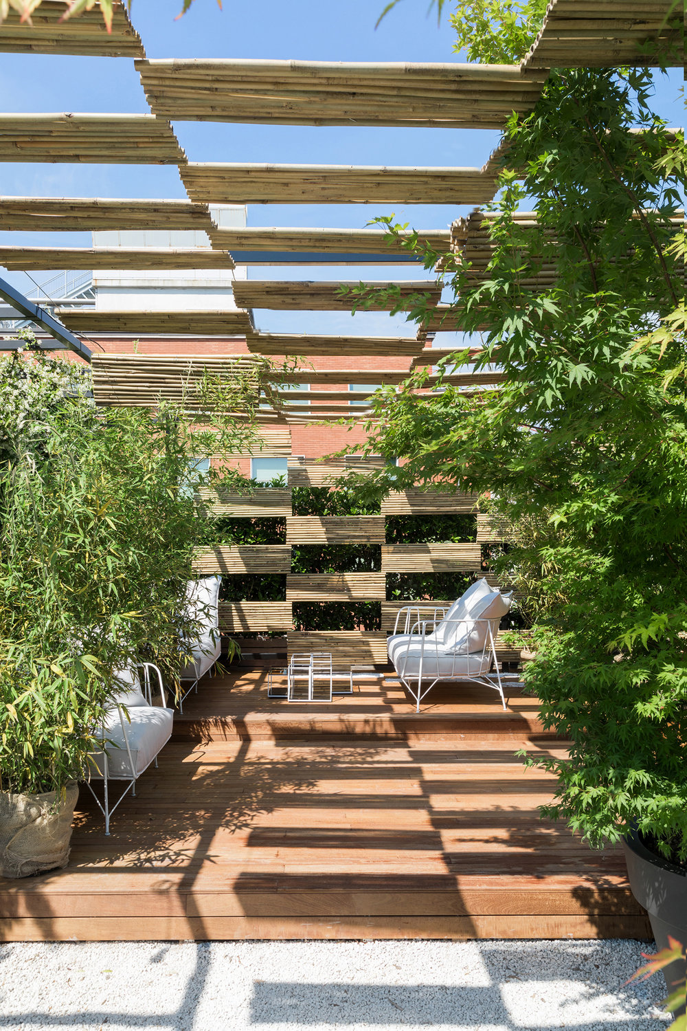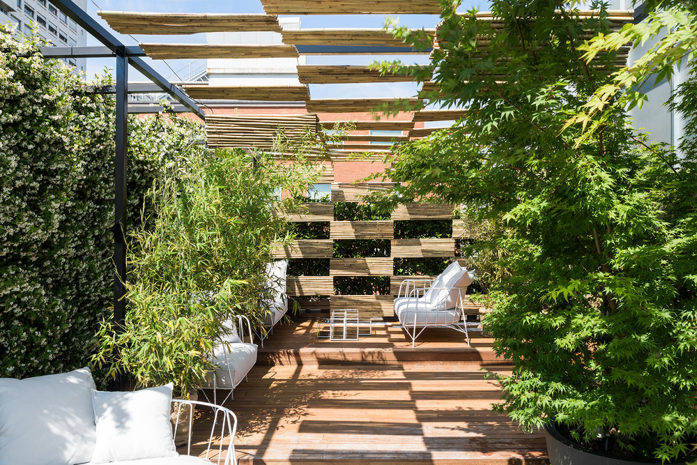 Since 2017, its 100-sqm rooftop has been entrusted to a designer who has been given carte blanche to undertake a complete makeover in cooperation with brands operating in the outdoor design sector.