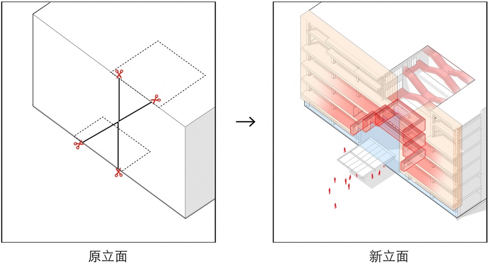 When more than ten versions of the previous plan were difficult to pass, Urbanus urban practice realized that it was necessary to carefully summarize the reasons for the failure of predecessors when invited to participate in the project design. The reason is very simple: the previous scheme was only facade reconstruction. This is just a whitewash on the way of opening windows. Obviously, the leaders intuitively disagree; However, it is even more pointless for designers to understand the specific opinions of leaders on materials and forms in a few words. In such a vicious circle, it is more and more depressed, and the idle period of the building is longer and longer. If it is not reconstructed in time, one of Party A's target customers is difficult to be stabilized. Anxious Party A urged us to come up with a new facade as soon as possible for the approval of the district leaders. When we have a direction, we can make the plane adjustment inside. Obviously, it's just facade transformation, which is neither our method nor our strength.
