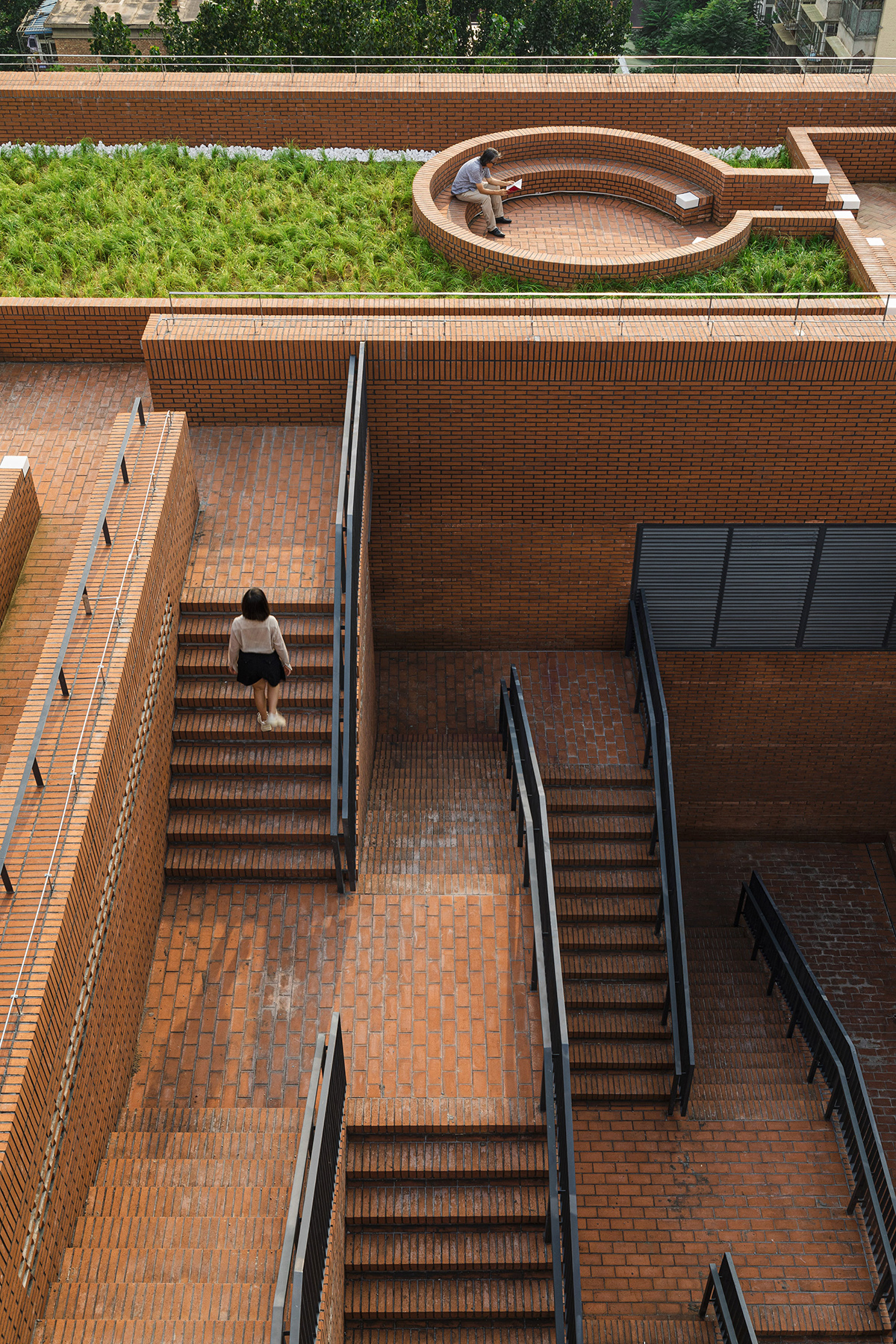 All these technical efforts are to achieve a goal of turning space into productivity and enabling young talents to give full play to their talents in a personalized alternative space. As a charging garden, the roof is paved with bricks and integrated with the facade of the building to create a refined outdoor space. In this environment, looking at the buildings in front of Tsinghua in which high-tech enterprises have settled, it is completely different from the noisy traffic and people on the ground. We can really feel that in the fierce international technology competition, the architectural space environment with the technological growth of our enterprises is getting better and more international. This iteration of the material environment is one of the foundations for our international competitiveness and confidence.