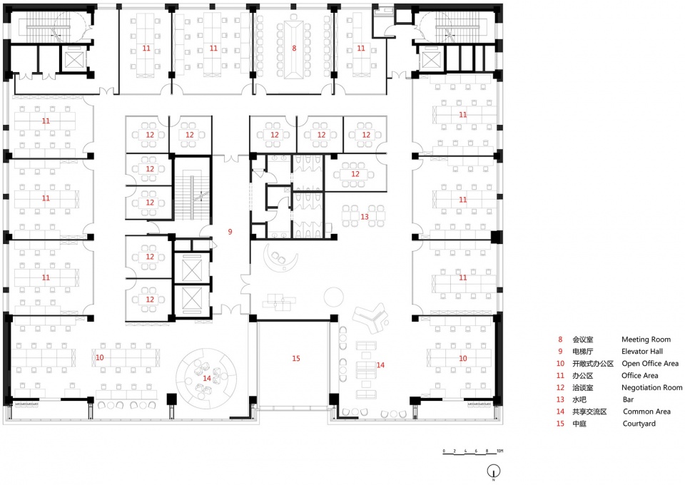 The Lanrun Building on the Chengfu Road is facing to the south entrance of Tsinghua University. Originally planned as a shopping mall with a 75m by 90m dimension in plan, this building was indeed used by mixed business patterns. The “Chaoshifa” supermarket at the ground level is a daily visit spot to the community. The upper levels were occupied by some educational institutions. Besides, a youth hostel also took a floor of this building. Under the current Beijing urban planning, Chengfu Road is to be upgraded into a high-tech Silicon Valley. As a state-owned business with an excellent location, the Lanrun Buildling is planned to become a platform hosting internationally competitive high-tech companies.