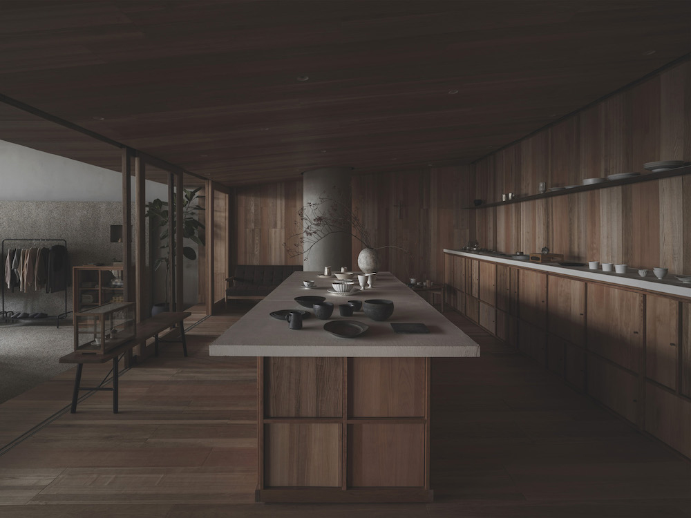 Lost & Found’s Oo?Eli store in Hangzhou is B.L.U.E.’s second cooperation with the furniture brand ‘Lost & Found’ after the renovation project for the brand at Guozijian Street in Beijing. Designed by Renzo Piano, Oo?Eli in Hangzhou is a comprehensive art park incorporating offices, art spaces, retail, design hotels and show fields. Lost & Found is a lifestyle brand that provides not only solid wood furniture but also ceramics, utensils, fabrics and plants for daily life. During this collaboration, we continues to bring the concept and sense of ‘home’ into the store, echoing a way of life that cherishes things in daily life. The spatial design revolves around materiality of the interior, natural texture and artisan craftsmanship, reflecting Lost & Found’s philosophy of art and daily life.