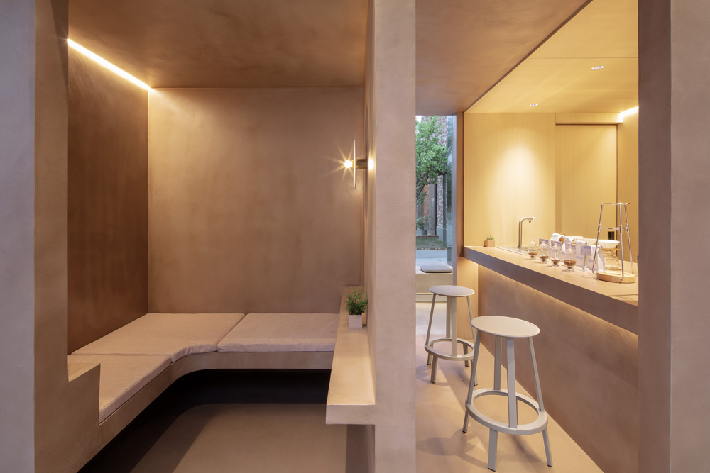 Different from common cafe’s integrated form of pour over bar and espresso bar, we put an independent pour over bar in the center of the earth-like cement box. Guests can enjoy pour over coffee at the quiet pour over bar space or communicate with barista.