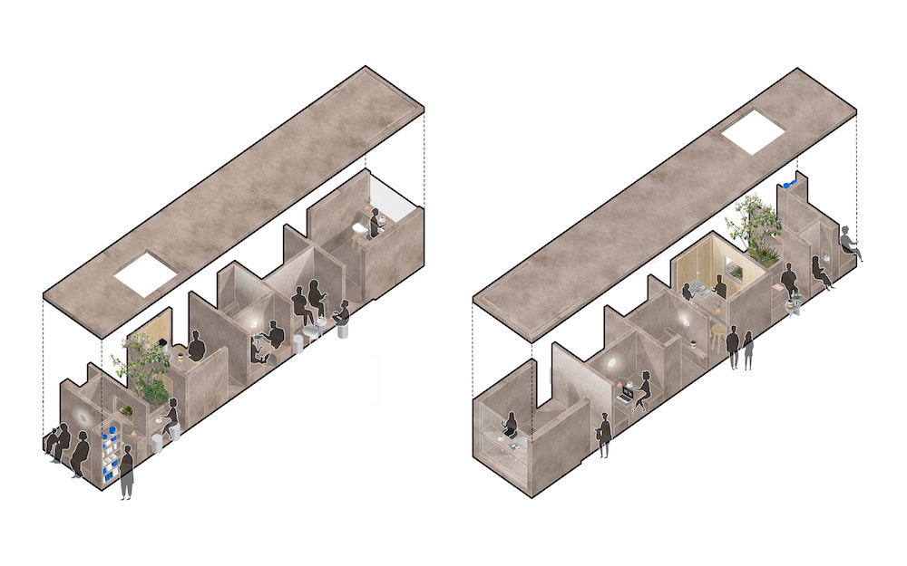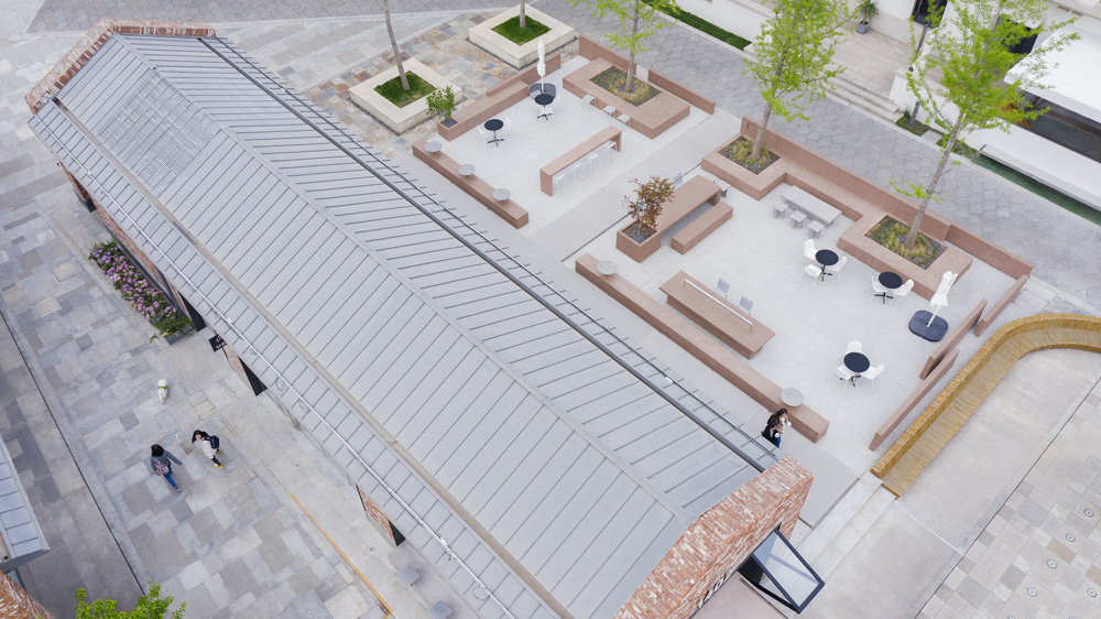 The new glass facade features fully-operable folding doors and windows facing both the square and the outdoor cafe area, and increases interaction between the interior and the exterior. The core zone of the box is divided into semi-private seating and spaces with different scales. The spatial strategy promises comfortable sense of scale for guests from those who want to be alone to a couple of close friends.