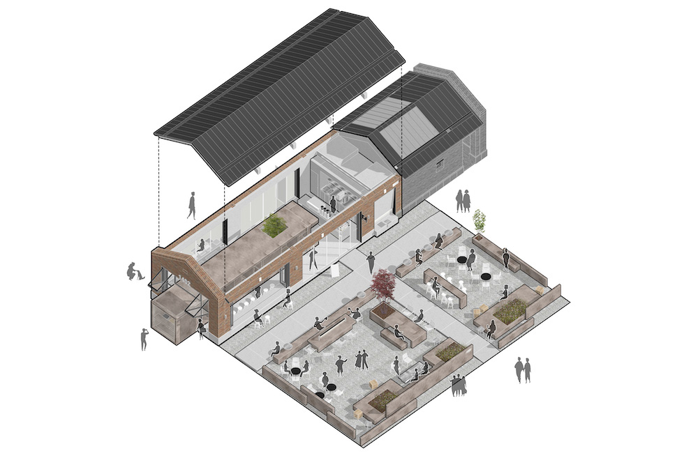 1402项目位于阿那亚社区西门附近通往海岸的主要道路上,是一家咖啡店,建在现有的斜屋顶红砖建筑中。改造背后的建筑理念包括新旧并置。改造包括两个部分:室内空间和室外座位空间。
