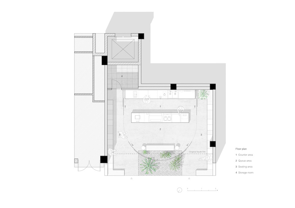 4; Although the project is a 50-sqm small-scale renovation, we consider it as an attempt to explore ideal and habitable urban interface in a deeper sense. Our design strategy focuses on contributing a part of the store’s commercial space to the urban streets by transforming part of interior into exterior. This attitude at least gives a small boost to modern urban spatial experience in a subtle way. We hope that there will be more and more projects like this in the city. They each acts as an individual point, gradually spreading into a network to integrally improve the quality of urban living.