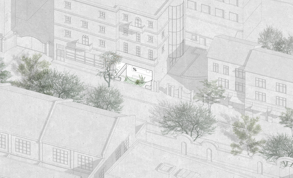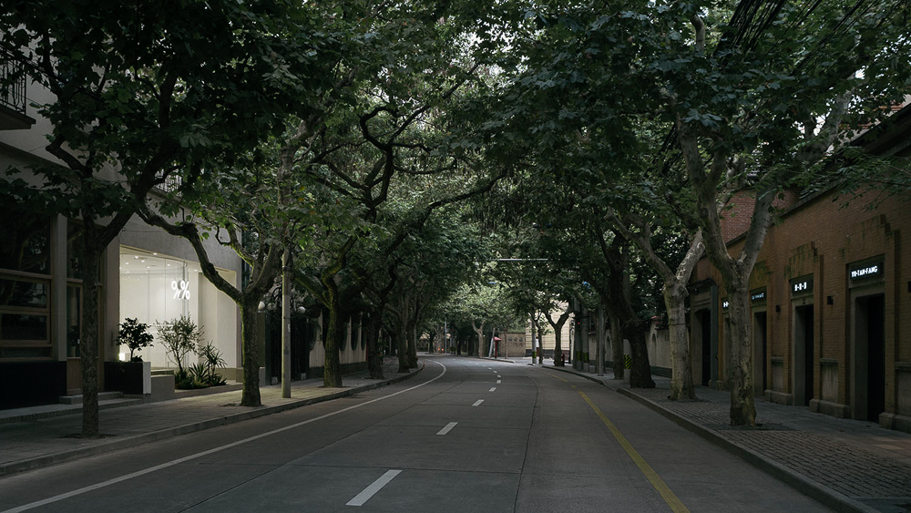 1; The site is located at West Jianguo Road, Xuhui District in Shanghai. With a total length of 2498 meters and a width of more than ten meters, West Jianguo Road sits at the former French Concession area and is gently covered with Chinese parasol trees. The street re-minds people the historical vicissitudes it has been through. The elements that have made West Jianguo Road one of the most charming and exotic neighborhoods in Shanghai include the historic architecture on both sides of the street as well as the comfortable walking expe-rience due to its pleasant street scale. Rather than the dull layout of ordinary commercial streets that separates indoor private space and outdoor public space by enclosed curtain walls, West Jianguo Road forms in a relatively vivid, dynamic and open way in order to make the street a place where genuine communication occurs, helping to shape an urban fabric with “thickness.”