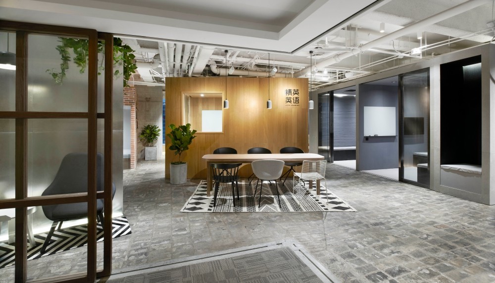 项目位于一座办公楼内,业主租赁三个房间作为学校的办公和培训区域。为了整合全部的空间的使用,设计师将其打通成为一整个房间。