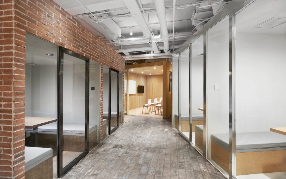 The project is located in an office building with good vision, the owner rent three rooms as the office and training area. the designer opened it up into a whole room in order to integrate the use of all the space.
