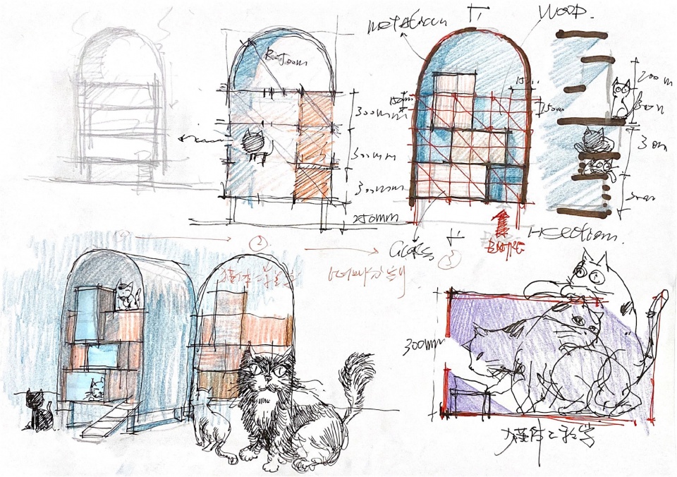 1. Cat oriented: Taking the living habits and spatial flexibility of cats as the starting point and taking a cat body engineering unit of about 300mm as the module, reduce the space, increase the private space and eliminate unnecessary appearance decoration.