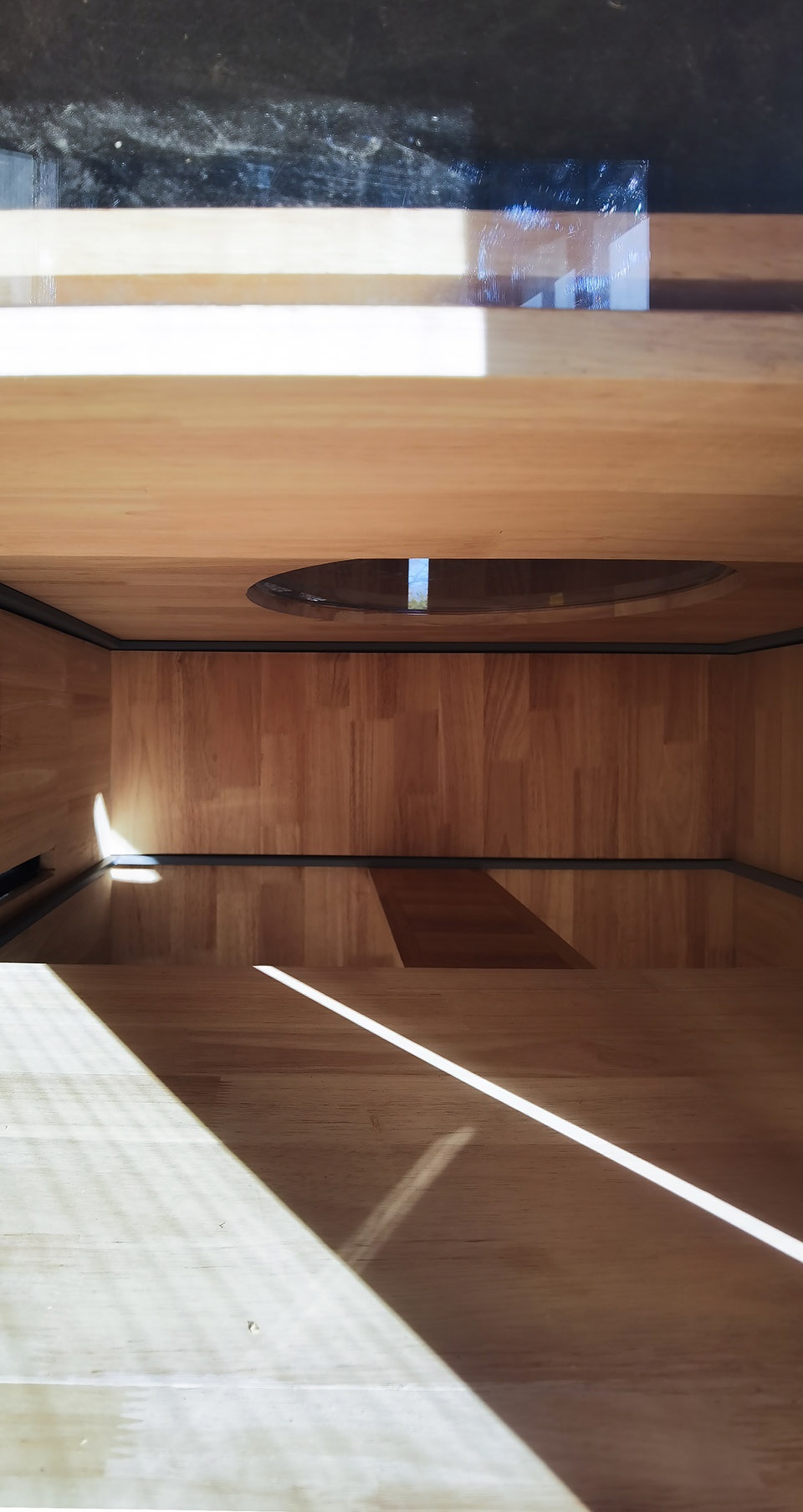 ▼猫窝由金属外壳与天然木材组成,The cat nest consists of a metal shell and natural wood