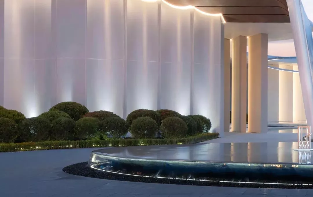 At night, the stars twinkled and reflected on the central water. We use this to expand and extend the concept of "stars". The first is the circular mirror light ring over the waterscape. It is like a star river, reflecting and continuing the space, giving people infinite imagination. The seemingly calm water surface is actually "undercurrent surging". From the outside to the inside, the flow velocity gradually increases, and the water surface spreads like a splash of ink, like a "calm vortex".