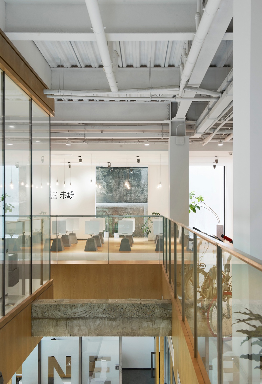 Unread Club is not only an offline-shared space for Unread online platform, but also a communication space for 5L.meet shared community of youth entrepreneurship. What is reserved in this room is not only an old mottled wall, but also the old memory of people who used to live here. Old wall is combined with minimalism modern elements, which makes this space full of intension without too much decoration.