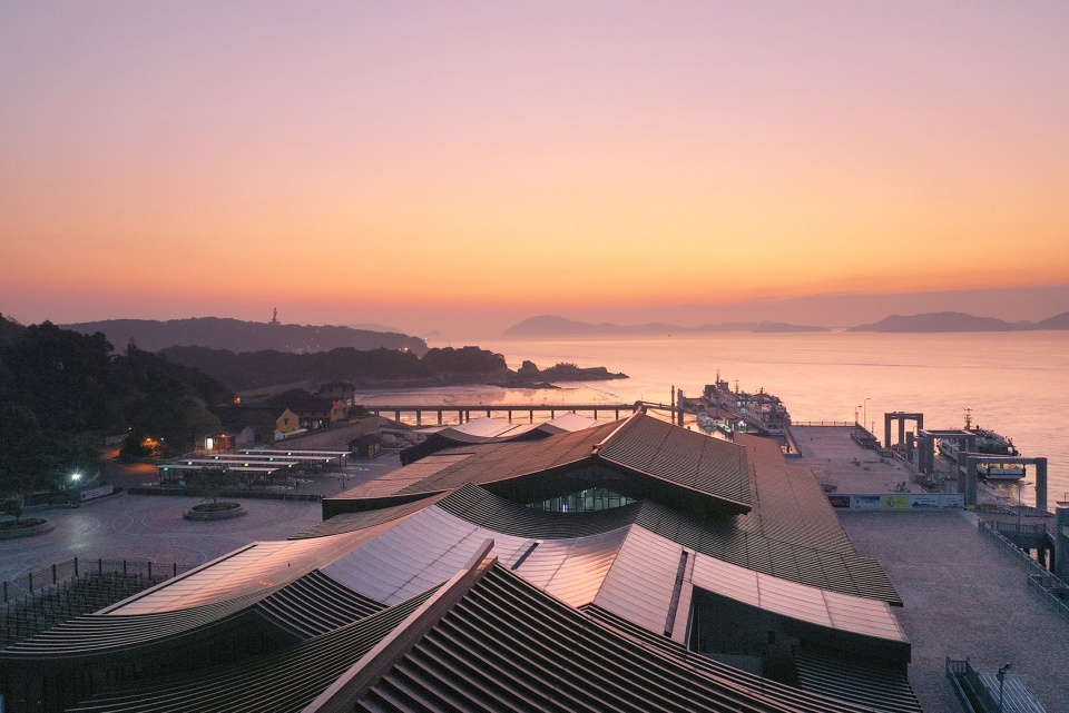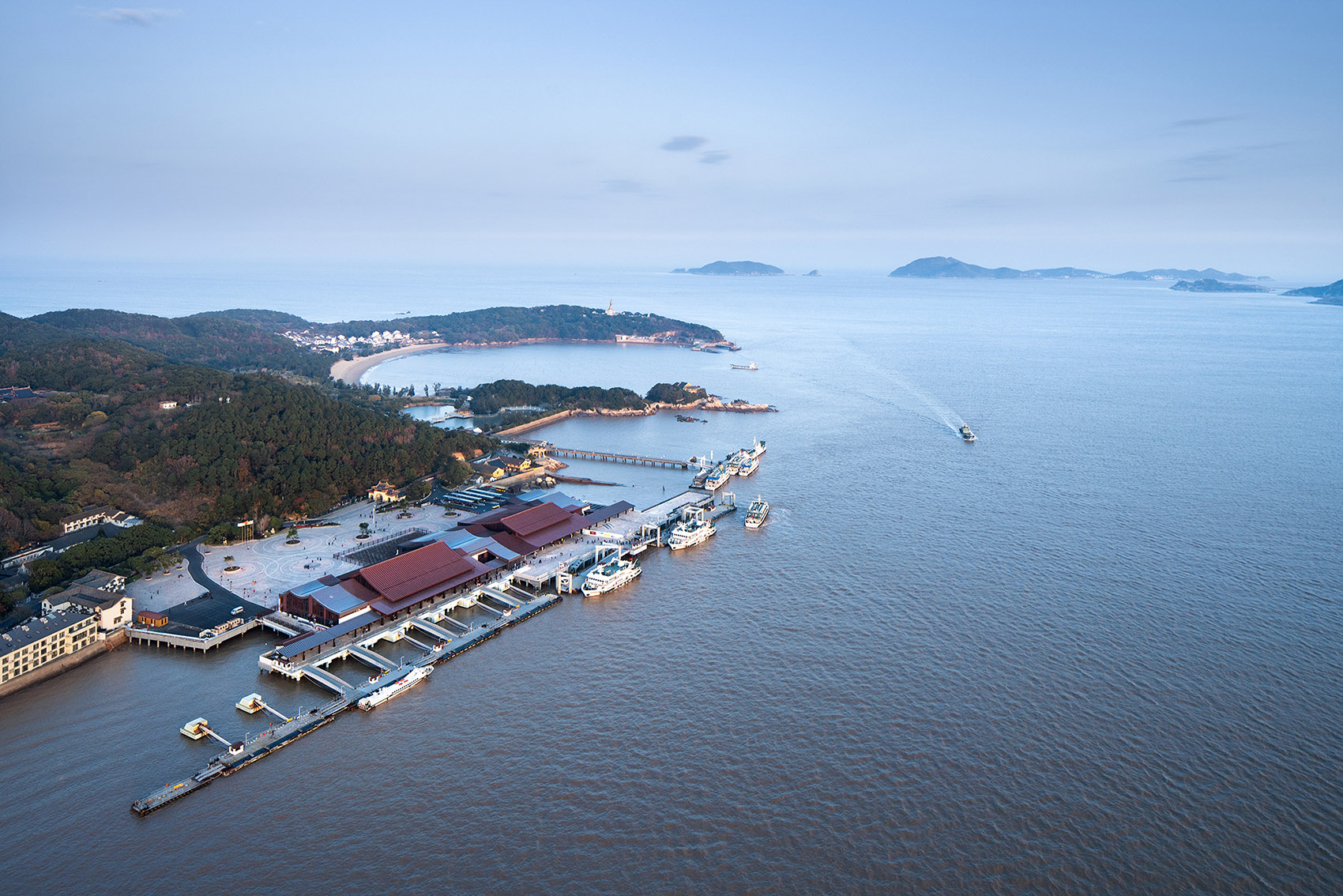 The project is located on Mount Putuo Island, Zhoushan, Zhejiang Province. As the sole public port of the Putuo Mountain Scenic Area, it integrates dock area, ticket office, tourist distribution square, ship waiting area and other functional sections. The scenic area receives more than 12 million visitors each year, but the former passenger transportation center was too cramped to accommodate the increasing number of tourists.