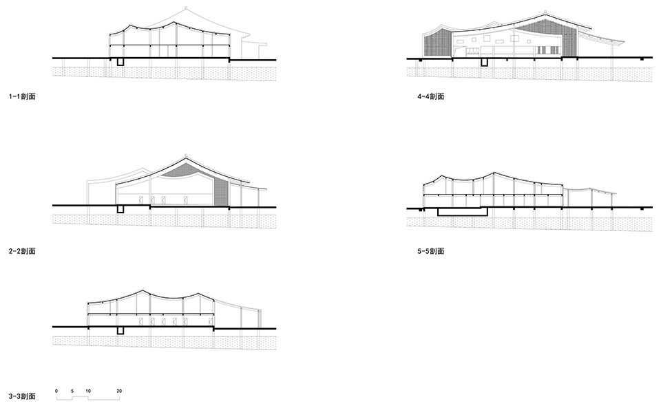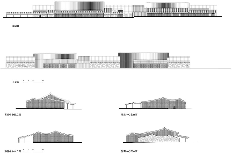 项目单向大跨度结构体系又恰好支撑了开间作为最小模件的构想,现代建筑与本土传统在此不谋而合。有了开间这一模件,造型的基本母题便已确立,只要根据功能的安排统筹不同的开间,单个乃至多个开间的集合形成大小不同的空间,柱网、屋顶和开间相对应,开间的下个层次——“建筑”应运而生。