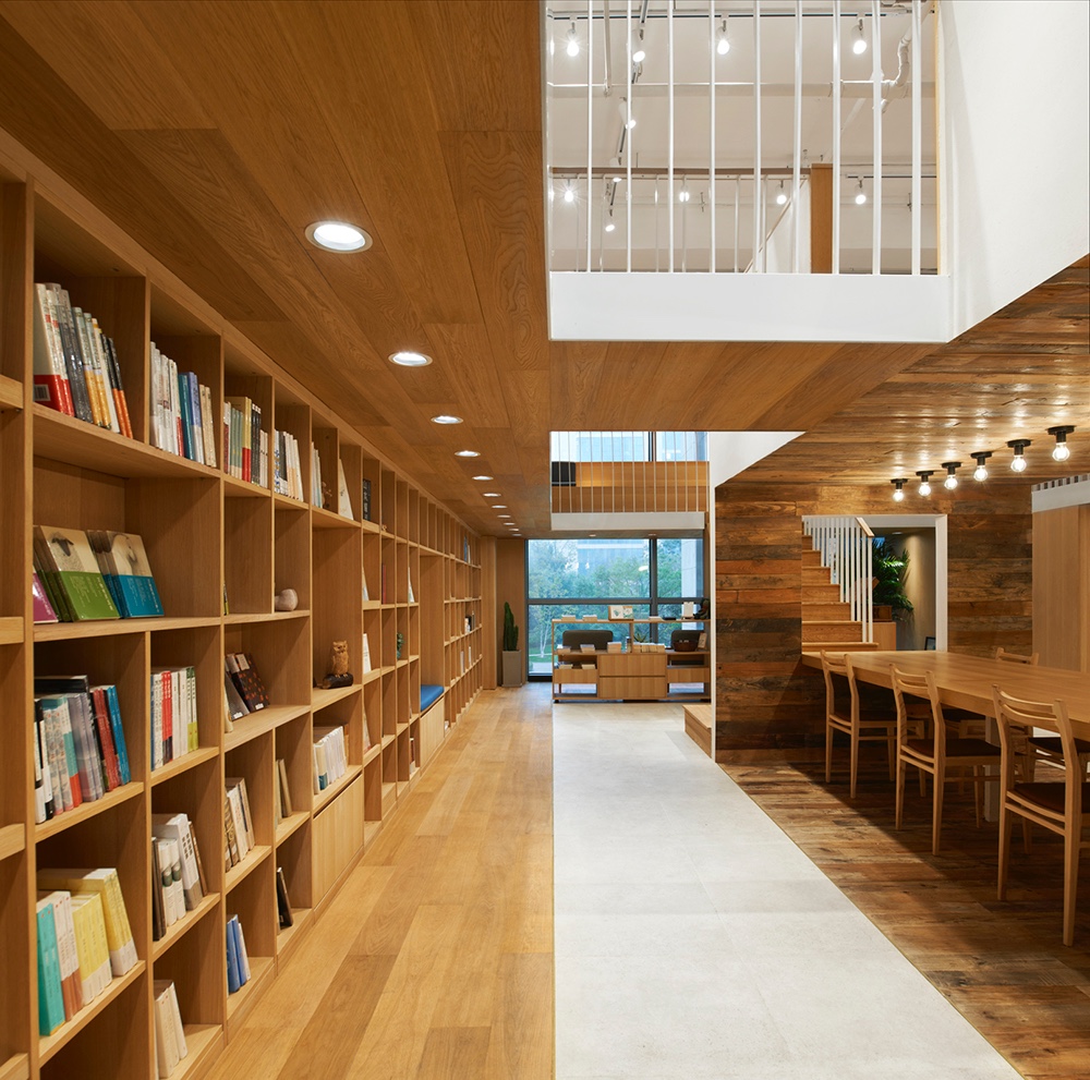 The original space is small. In order to use this limited space efficiently, a mezzanine floor built from steel structure is added into the project. This design was focused on three aspects including the extension of space, the interactive between mezzanine floors and the complexity of functions.