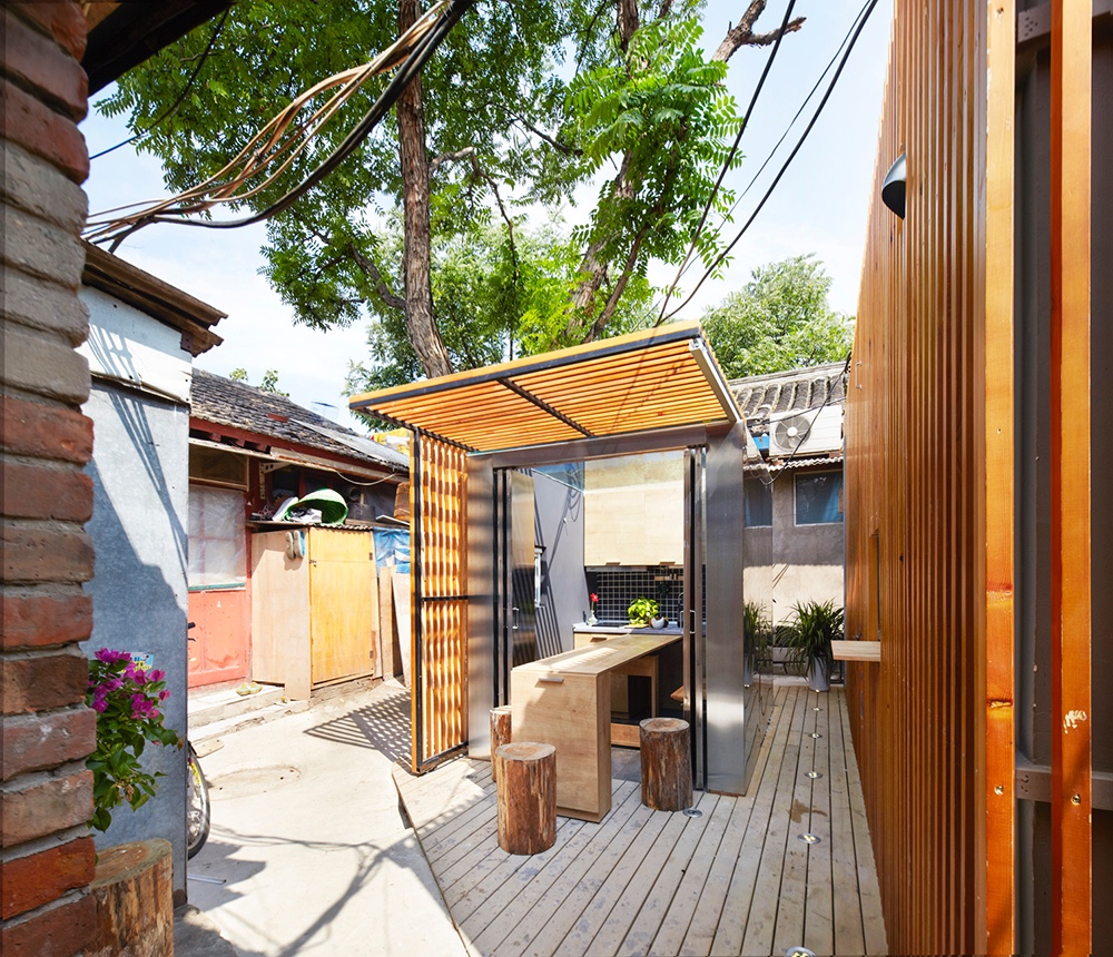 While designing for this renovation project of Nanluoguxiang tenements, we no1ced the two houses are extremely small, only with area of 3.6 m2 and 2.8m2. Thus we emphasized on its flexibility to fulfill more func1ons, including the variability and flexibility in both ver1cal and horizontal directions.