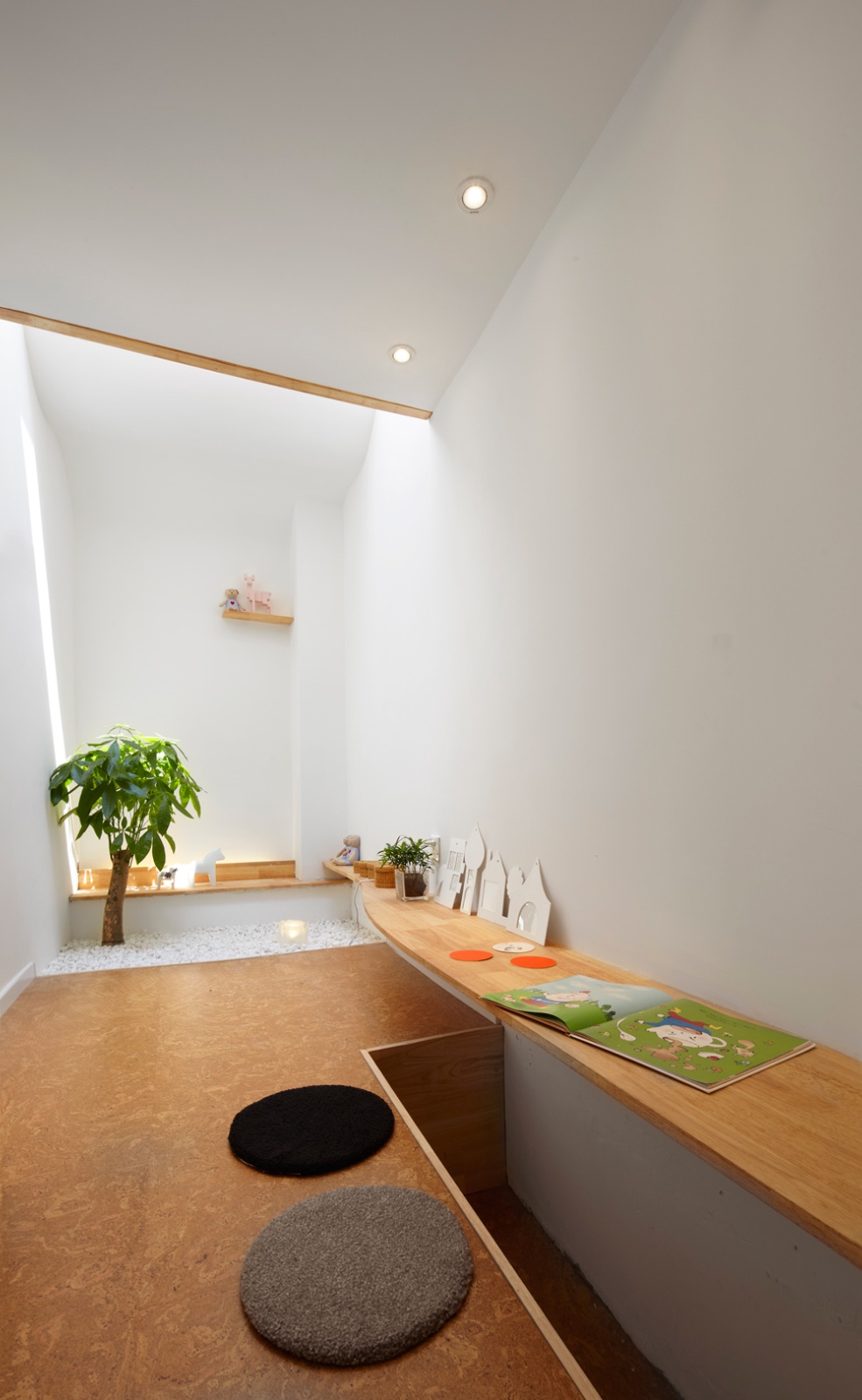 For the children’s room, we designed a space with trees and stones just like a courtyard, creating a sense of fresh outdoor area.