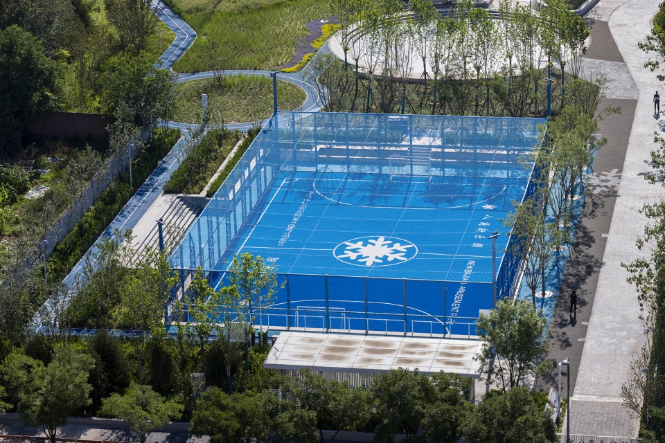 同时,公园设置了旱地冰壶场地、下沉式街头篮球场、下沉式五人足球场等场地,将普及的运动尤其是冬奥运动深入民心,让更多的人们体会到冬奥运动的魅力,激发对冬奥的热情和关注。