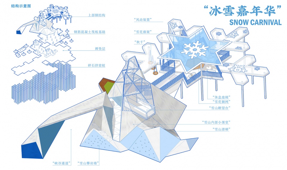 ▼雪山、雪花构筑物结构分解图,diagram of the “snow mountain” and “snowflake”