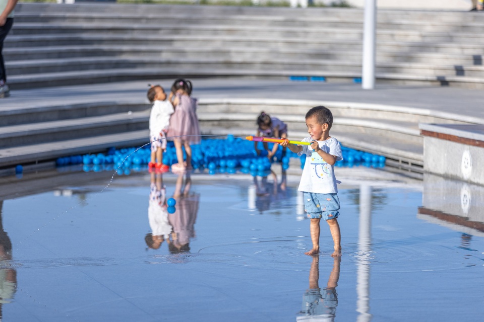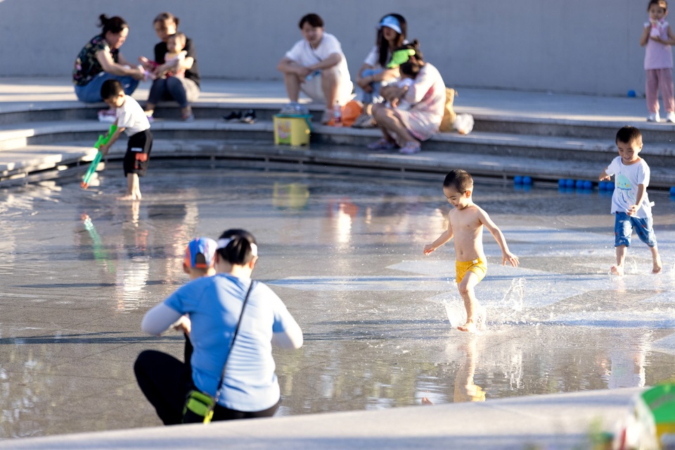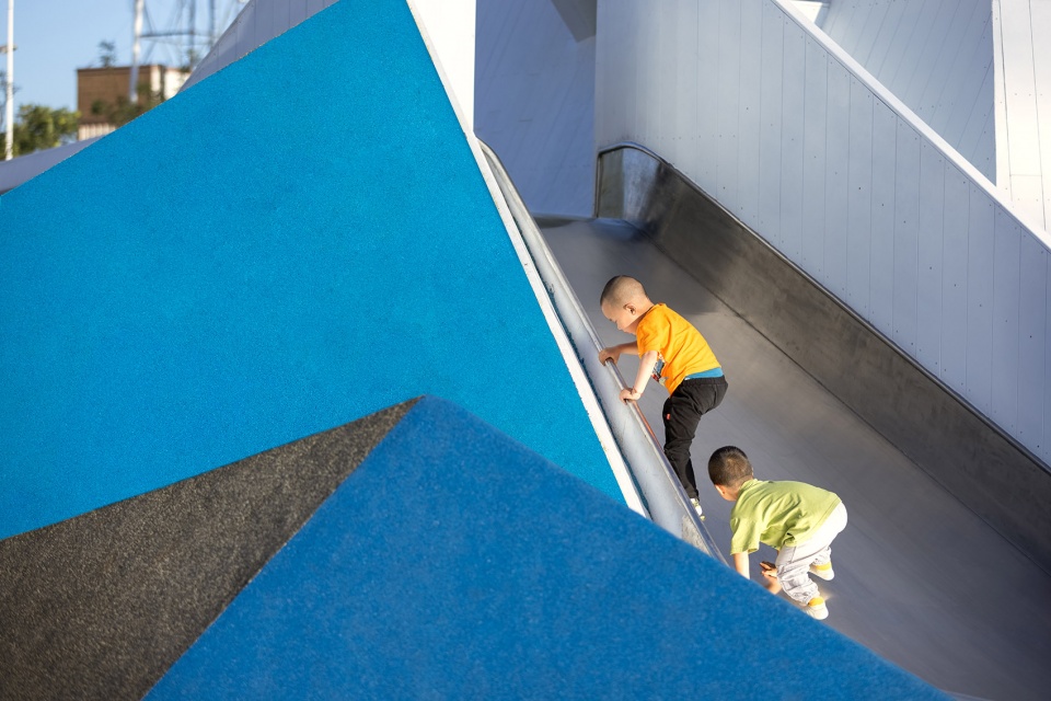 It is important for the site to create the atmosphere and state in mind to play the games, not to design specific details of the game in a particular way. In our space, we gather all the love of children, but also let the adults return to childhood. Basketball, soccer, climbing, slide, sand pit, water treading, adults and children digging sand together and treading water in the pool together. The sunken water plaza is designated as a multifunctional viewing and performing activity area, serving as an ice skating ground in winter and a water play area in summer to meet people’s demand for water-friendly activities. Citizens spontaneously bring ocean balls to enjoy the happiest summer here.