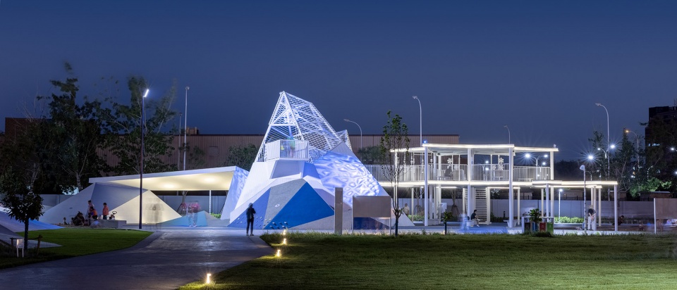 The interior space of the Snow Mountain structure has been created as a “Snow Mountain Classroom” to provide more possibilities for neighborhood socialization. Community concerts, science classes, Picture Book reading area …… People are constantly creating new ways of using and activities here. When night falls, from Fushi Road, the snowy mountain under the waterline light reveals a light blue glow, full of peace and calm.