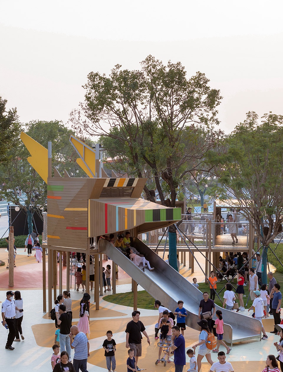 蜿蜒的龙形廊架,有型又好用;“有龙在田”活泼动人,可以让孩子们尽情玩耍;“飞龙在天”的龙塔是场地的高点和精神堡垒;还有东莞这条全面发展、迅速腾飞的“龙”,在湾区也愈发亮眼夺目。