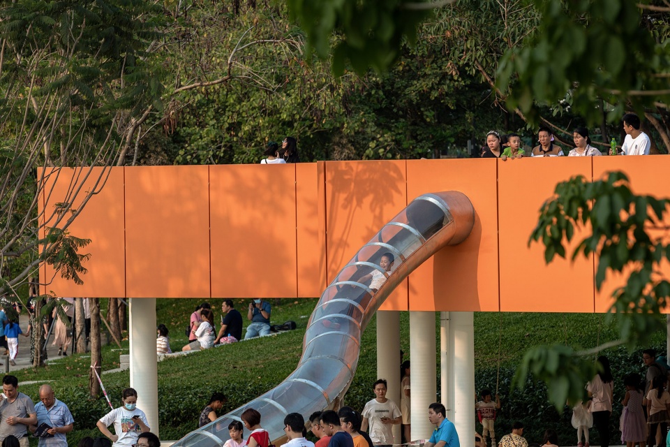 In terms of the visual element, the lively and distinctive “orange” makes Longwan Park a “bright” attraction on the banks of the East River