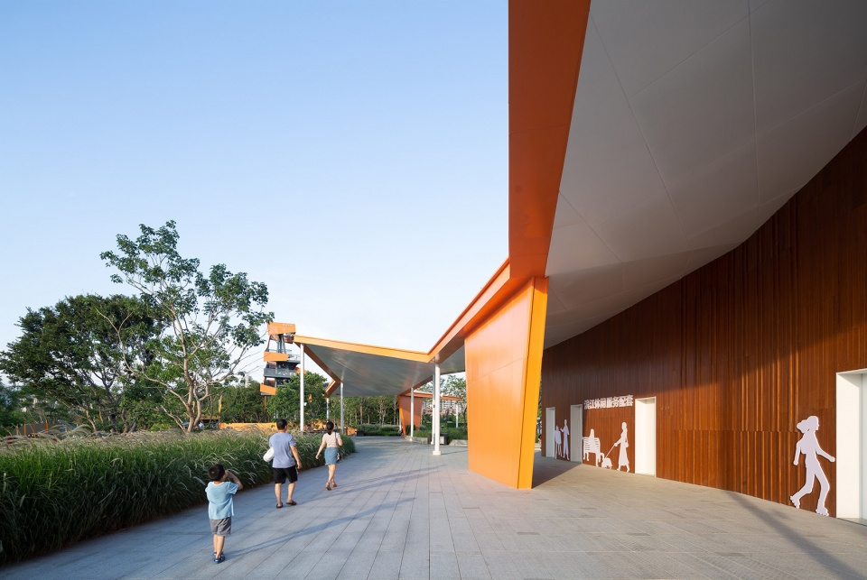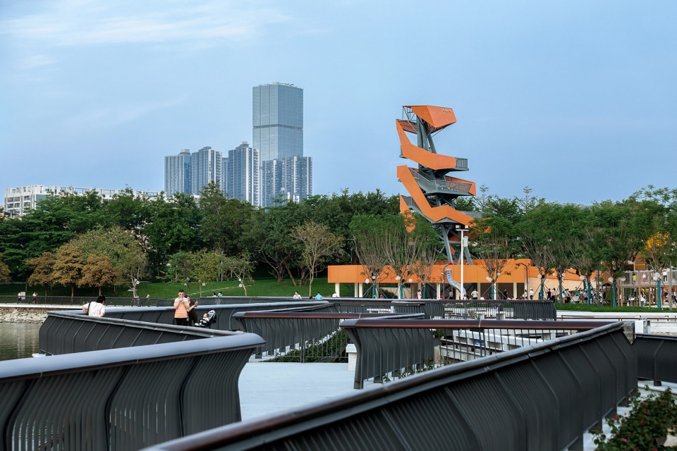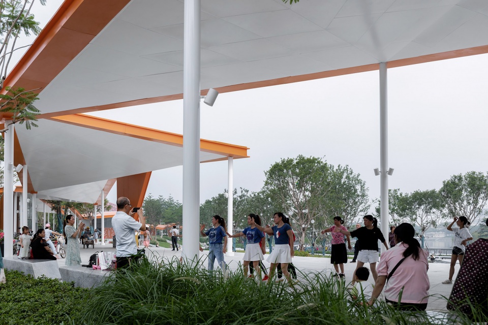 ▼在视觉色彩上,活泼醒目的“橘”,也让龙湾公园成了东江水畔的一抹“亮色”