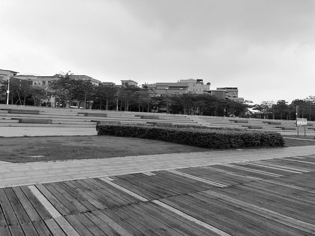另外值得记录的是对现场混凝土大台阶的利用。相关改造设计减少了拆除新建带来的碳足迹,变废为宝,使其发挥了新的功能,提供全新的体验。为了回应当地的炎热气候,设计中也安排了较大面积的廊下和林下空间。公园初建成,乔木冠幅或许还达不到理想的遮阴效果,但景观始终是属于时间与季节的,相信经过一段时间的生长,龙湾湿地公园会越来越好。