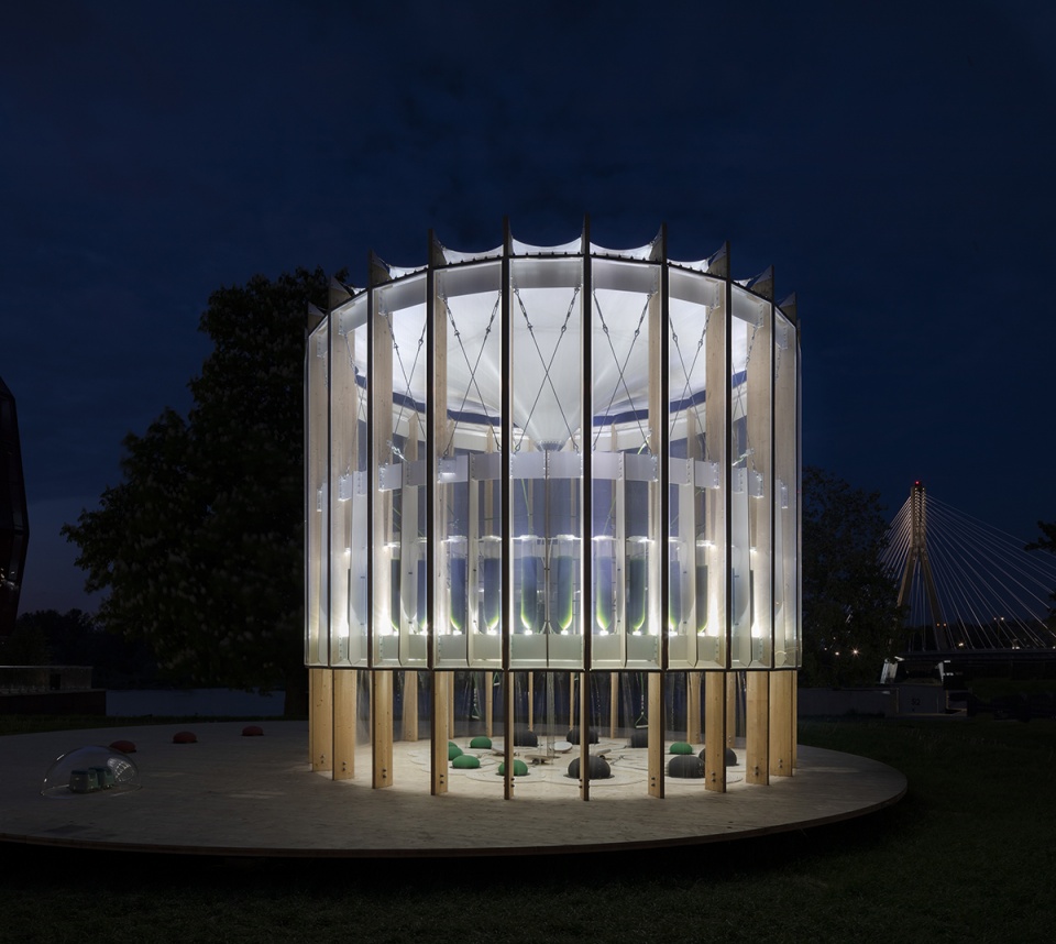 该项目位于哥白尼科学中心(Centrum Nauki Kopernik)的公共绿地内,除了游乐场之外,这里还将举办一个专门的展览,用于说明“空气泡泡”发明背后的设计创新。该项目整合了Photo.Synthetica技术,可将光合作用巧妙地应用到建筑环境的营造当中。