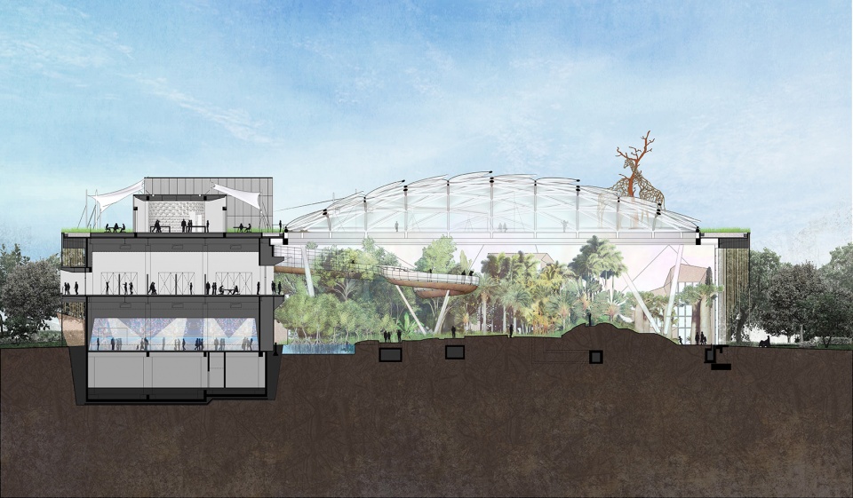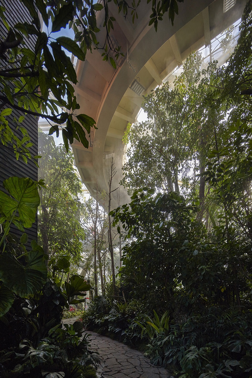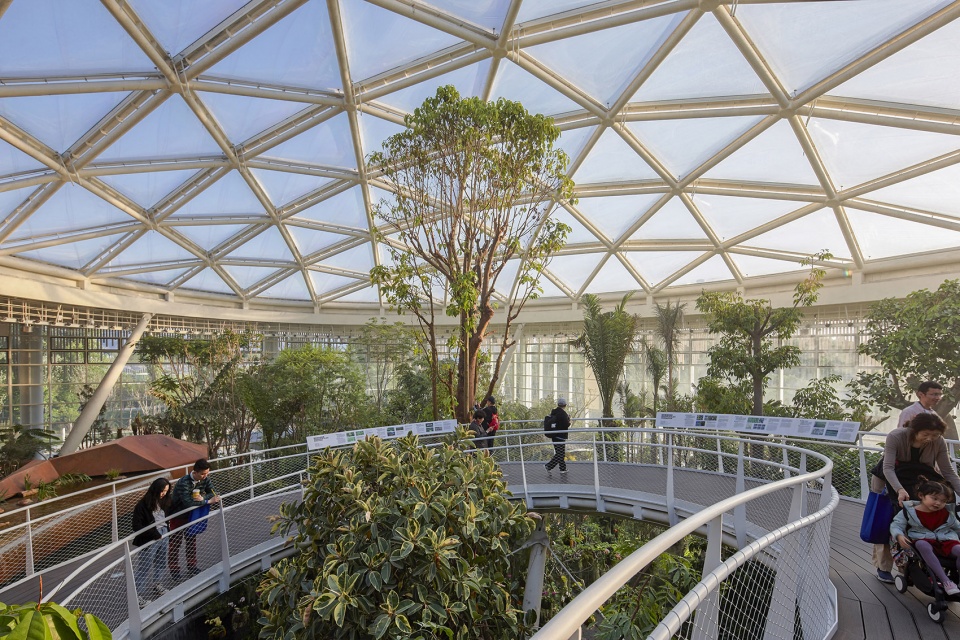 ▼温室内空中步道及屋顶ETFE采光顶,the route is covered by a huge ETFE daylighting roof