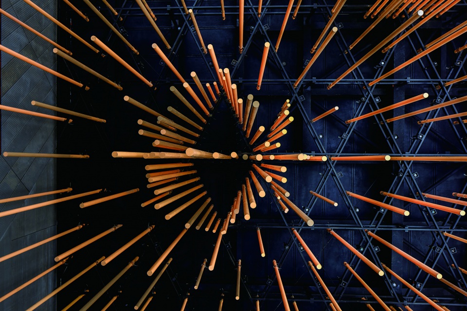 ▼灰空间内垂悬的“根须”隐喻着植物丰富的根系