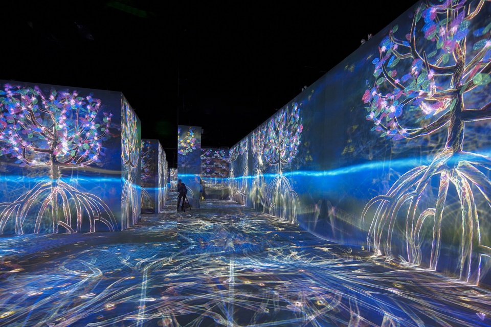 The first stop is the Multimedia Exhibition Hall. The first scene is a lively restoration of a mangrove forest created by TeamLab. To provide the audience with an interactive and engaging experience with nature, TeamLab uses the most advanced interactive acousto-optic effects and an immersive exhibition.