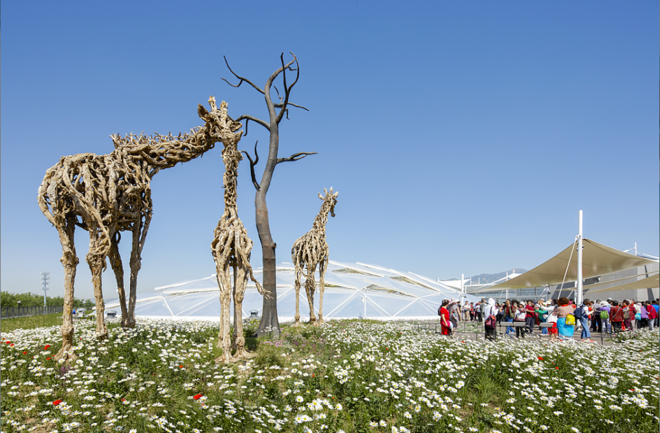 Unlike other greenhouses, the greenhouse of the Botanic Garden is hidden on the east side behind the waiting area and is characterized by a “rising horizon” structure. The dangling structure inside the grey space represents the abundant root systems of the plants. This mysterious design has a strong visual appeal for the audience. Meanwhile, it provides shade for the audience while they are waiting outdoors in the hot summer weather, making the otherwise tedious queuing experience full of curiosity and wonderment.