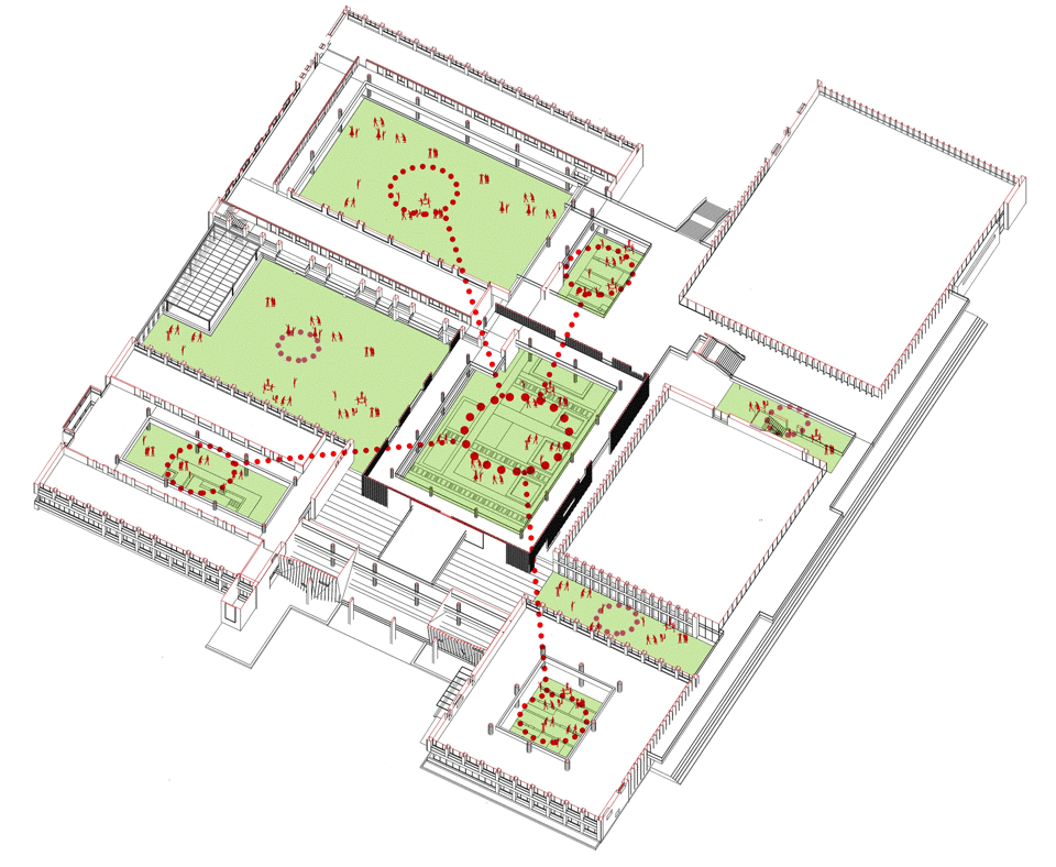 Multiple courtyards also form more abundant courtyard forms such as outer courtyard and side courtyard through group relationship, which further increases the level of connection between functions. Multiple courtyards not only increase the sense of spatial experience, but also make the functional division more reasonable. Inside and outside, dynamic and static, primary and secondary, campus life can also be compared with Garden experience.